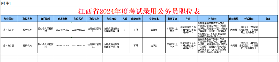 铅山检察招录2人