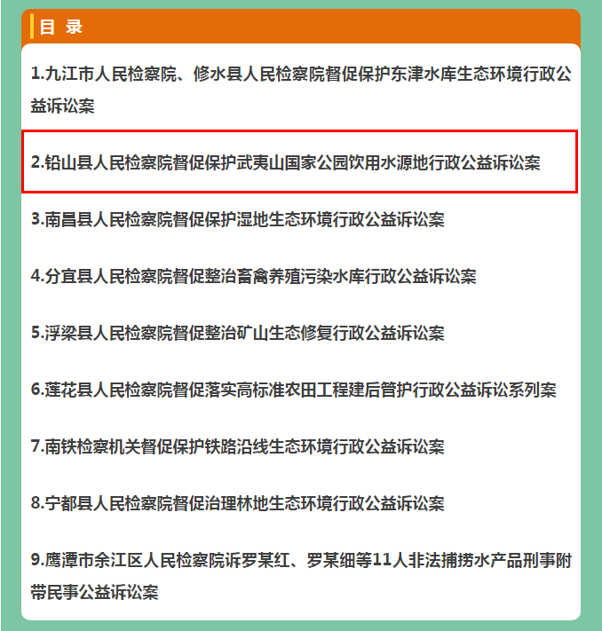 行政公益诉讼 武夷山国家公园 饮用水源地保护 府检联动 跨区域协作