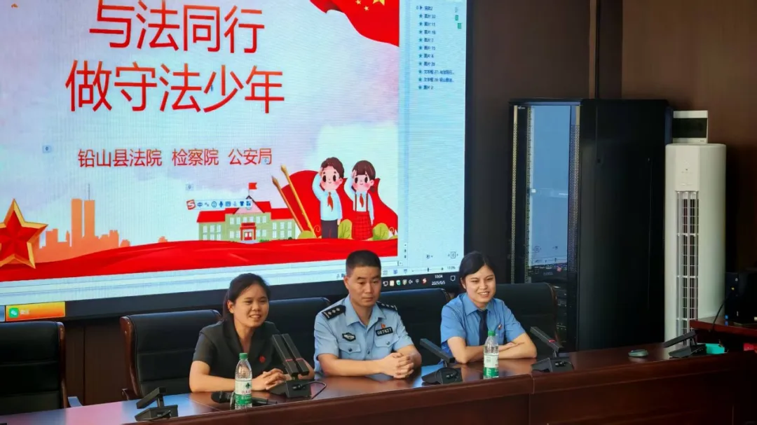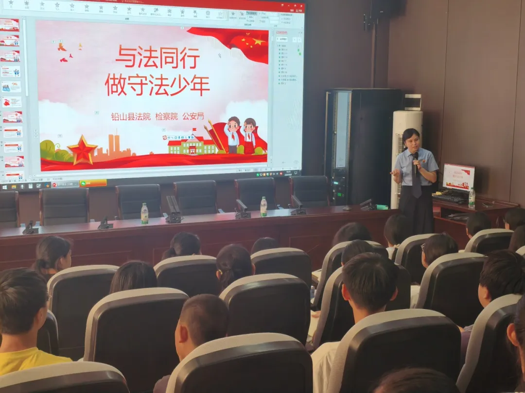 铅山县人民检察院联合铅山县人民法院、铅山县公安局一同走进铅山四中,开展“与法同行,做守法少年”主题宣讲。检察官结合《中华人民共和国未成年人保护法》《中华人民共和国预防未成年人犯罪法》,以 “千里之堤,溃于蚁穴” 为警示,让同学们深刻认识到 “小错不纠,大错难改” 的道理,鼓励同学们树立正确的世界观、人生观、价值观,学会用法律武器维护自身合法权益,坚决抵制不良诱惑,走好青春每一步!
