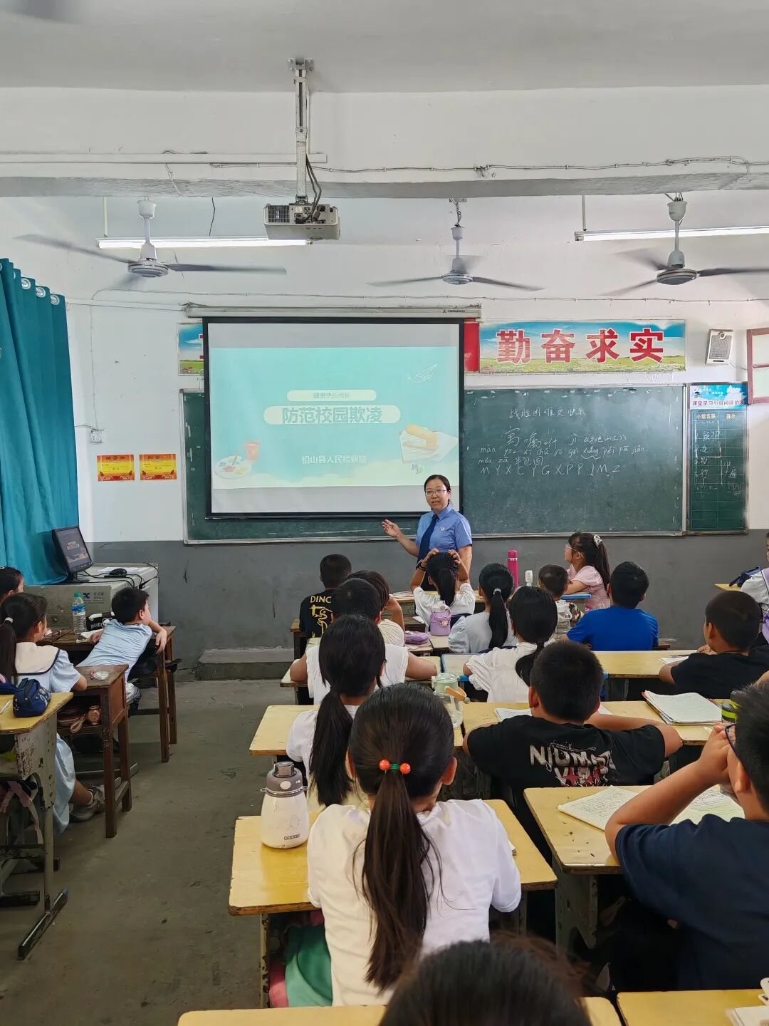 活动中,检察干警们以“知法守法,健康成长”为主题,通过PPT讲解、案例讲述、互动提问等形式,为孩子们开展预防未成年人犯罪、防范校园欺凌等知识宣讲,孩子们听得聚精会神,互动环节,大家纷纷踊跃分享自己的见解。“尊法、学法、守法、用法”观念在同学们心中扎根发芽。