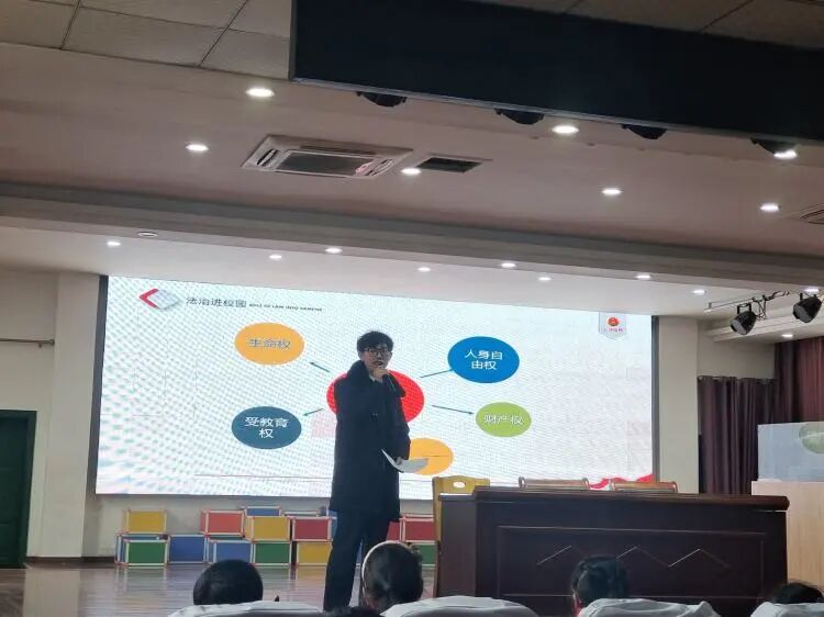 法治副校长舒燕华以校园安全教育为内容向同学们讲述食品安全、网络安全等方面的法律知识,提醒同学们要时刻注意自身安全,遵守法律法规、校园规章,不参与危险活动,提高防范意识,共同营造安全、和谐、美丽的校园环境。