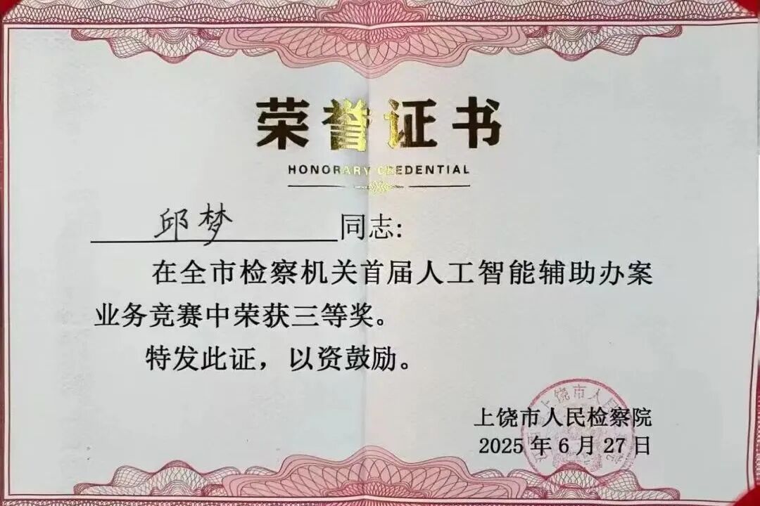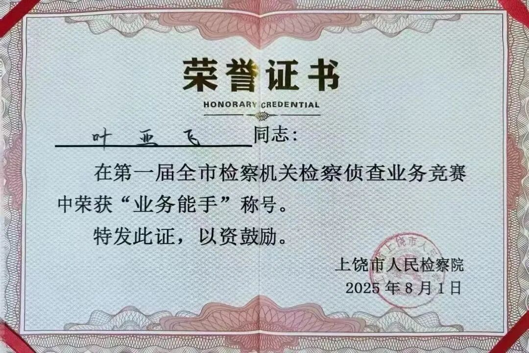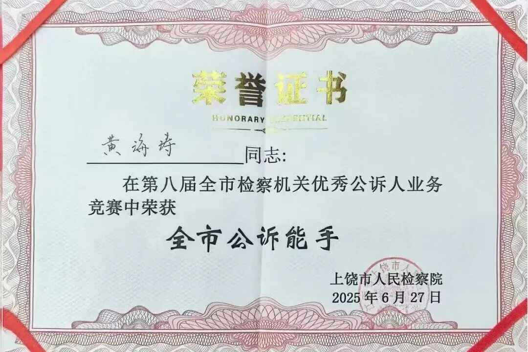 聚焦法律监督主责主业,以“高质效办好每一个案件”为目标,在业务竞赛中锤炼本领、勇攀高峰。2025年,铅山县人民检察院在全市检察机关业务竞赛中表现亮眼,3名干警分别荣获“全市公诉能手”、“全市业务能手”及人工智能辅助办案三等奖,单位获评优秀组织奖。通过“以赛促学、以学促用”,铅山检察人用专业素养擦亮司法为民底色。