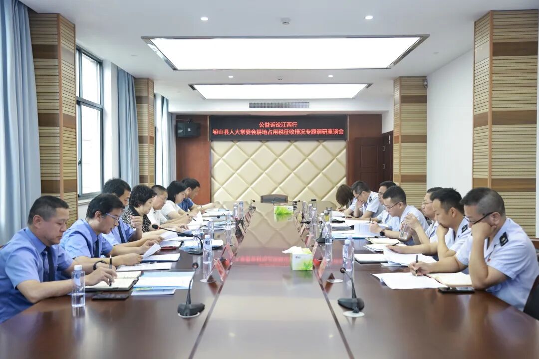 为深入贯彻落实省人大常委会关于2023年公益诉讼江西行的活动方案,促进耕地占用税依法征收,推动税务机关依法履行耕地占用税征收职责,堵塞耕地占用税征管漏洞,铅山县人民检察院主动向县人大常委会通报耕地占用税专项监督工作情况,县人大常委会高度重视。6月15日,县人大常委会主任陈晓琴、副主任黄贤军、铅山县人民检察院党组书记、检察长徐元健一行赴国家税务总局铅山县税务局召开耕地占用税征收情况专题调研座谈会,会议由铅山县人大常委会副主任黄贤军主持,铅山县人民检察院、国家税务总局铅山县税务局相关负责同志参加调研座谈会。