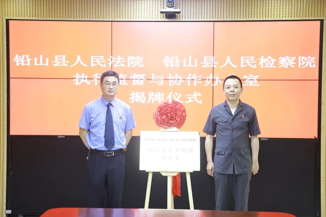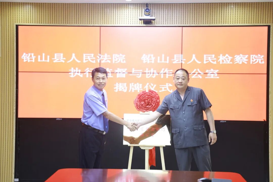 为深入贯彻《中共中央关于加强新时代检察机关法律监督的工作意见》及江西省委实施意见,进一步健全完善民事执行和法律监督协作配合,实现精准监督和有效监督,构建检法良性互动工作关系,铅山县人民检察院、铅山县人民法院联合成立执行监督与协作办公室,于5月17日举行了揭牌仪式。县检察院党组书记、检察长徐元健,县法院党组书记、院长陈跃共同为“执行监督与协作办公室”揭牌,检法两院相关领导及干警出席揭牌仪式。