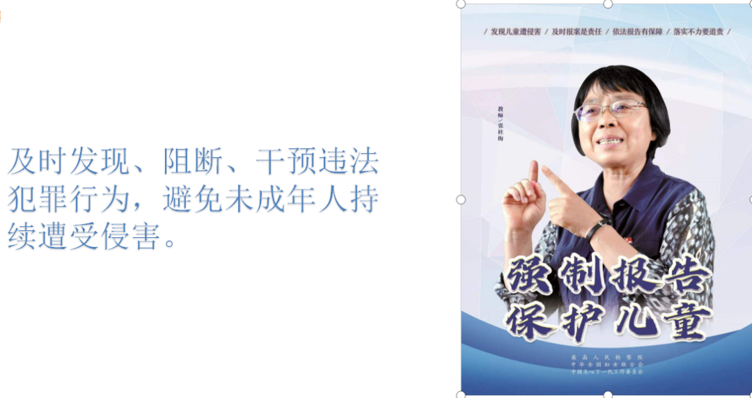 为切实加强对未成年人的综合司法保护,落实强制报告制度,铅山县人民检察院派员在铅山县民政局举办的儿童督导员和儿童主任培训班上,以“强制报告制度”为主题,开展强制报告制度专题法治宣讲。