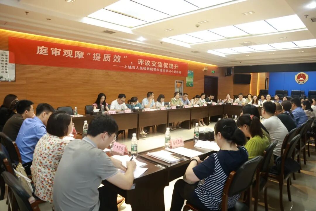为进一步夯实刑事检察队伍建设,大力培养青年干警,推动上饶刑事检察工作“高质量、走前列”,近日,上饶市人民检察院在铅山组织开展“庭审观摩‘提质效’ 评议交流促提升”青年理论学习小组活动。全市检察机关刑事检察部门青年干警现场观摩了一起网络寻衅滋事案庭审实况,并就出庭预案及庭审情况进行评议。省检察院黑婷婷、刘美霞莅临指导,南昌、景德镇、鹰潭、宜春等地检察机关应省检察院邀请派员参加本次活动。